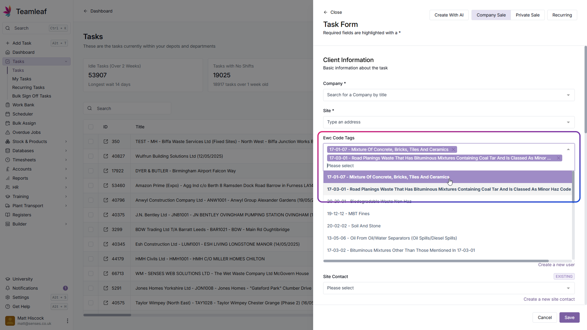 Fixed Task Form and Task Template Form task types not reloading and filtering correctly when the depot is changed.
