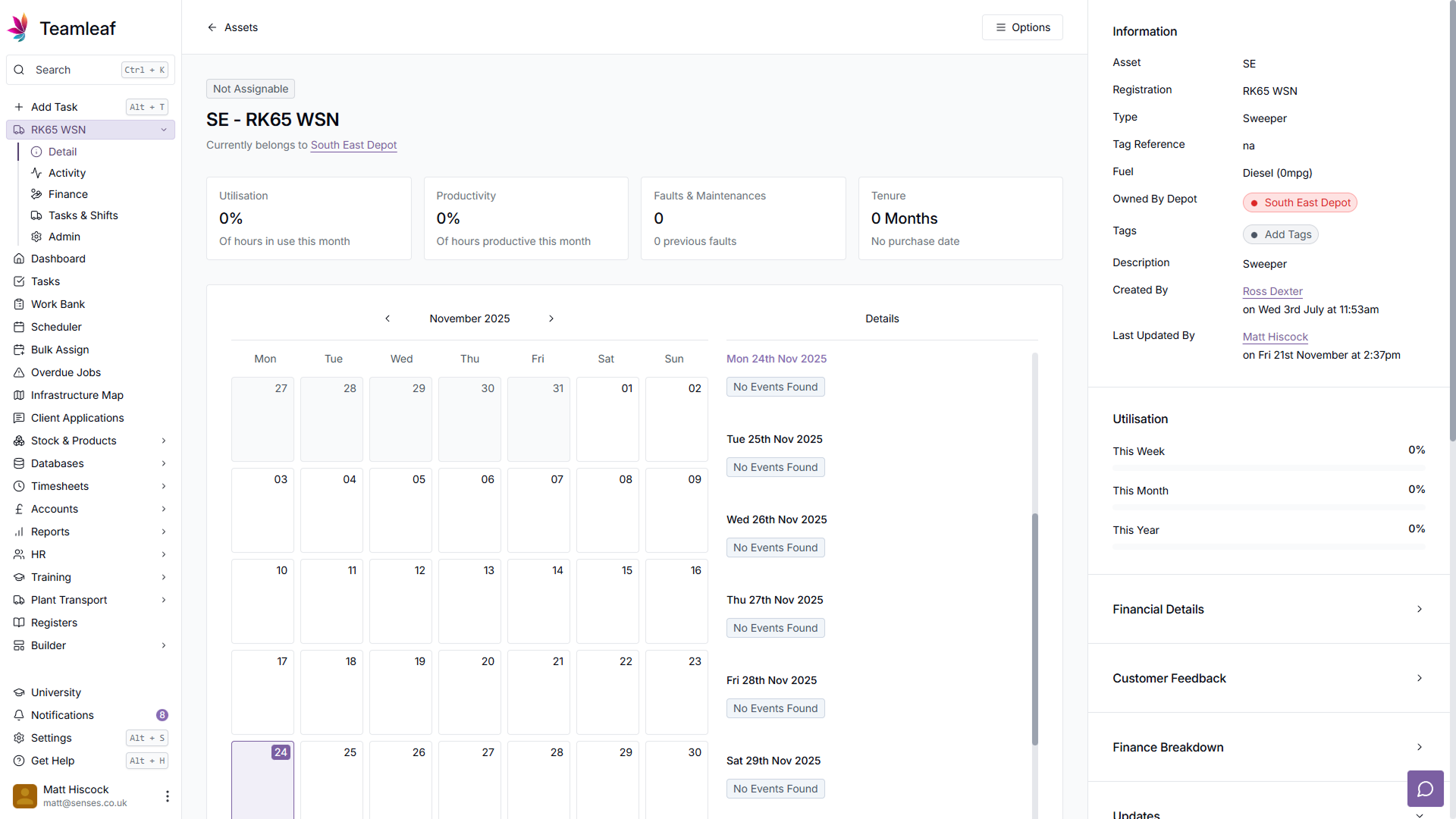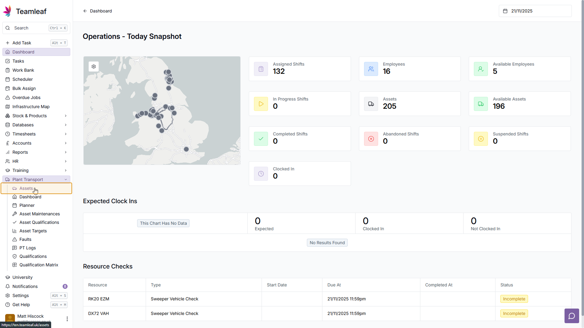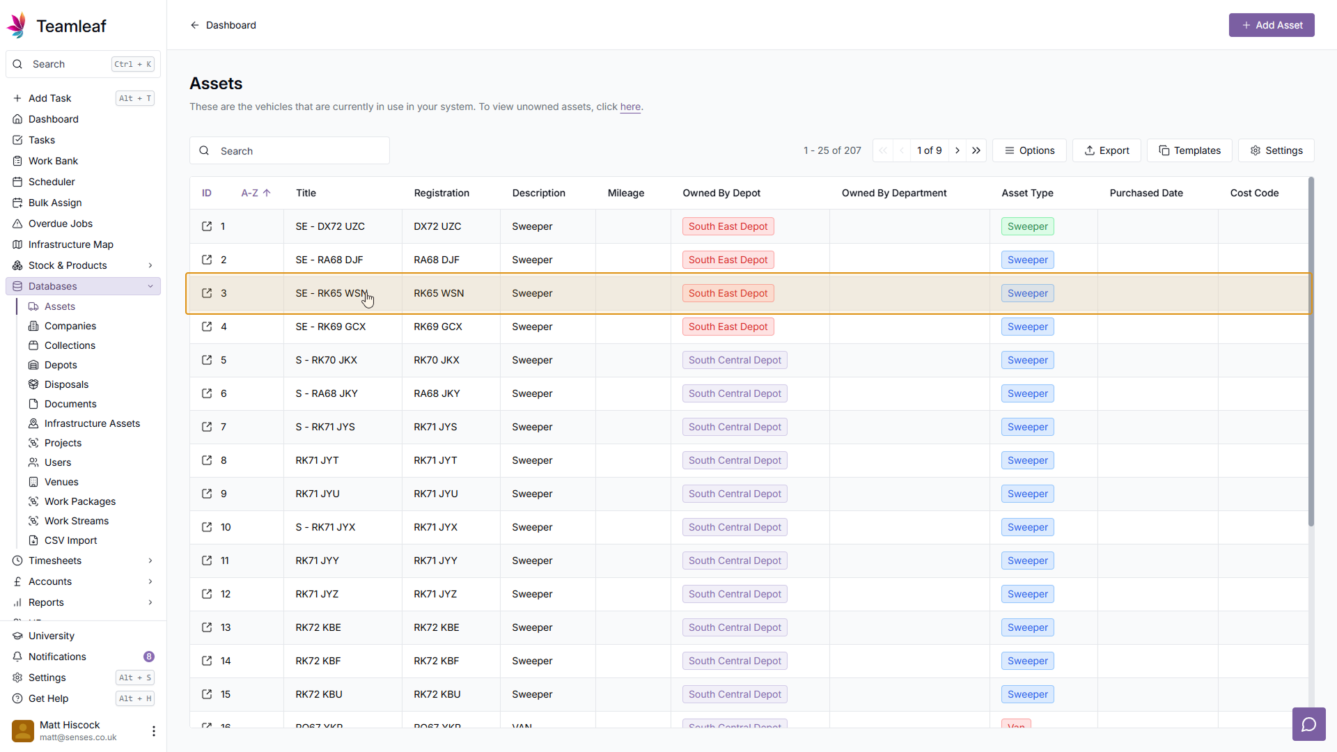 To start, click 'Plant Transport' on the left sidebar, then click 'Assets' in the dropdown menu to go to the Assets page