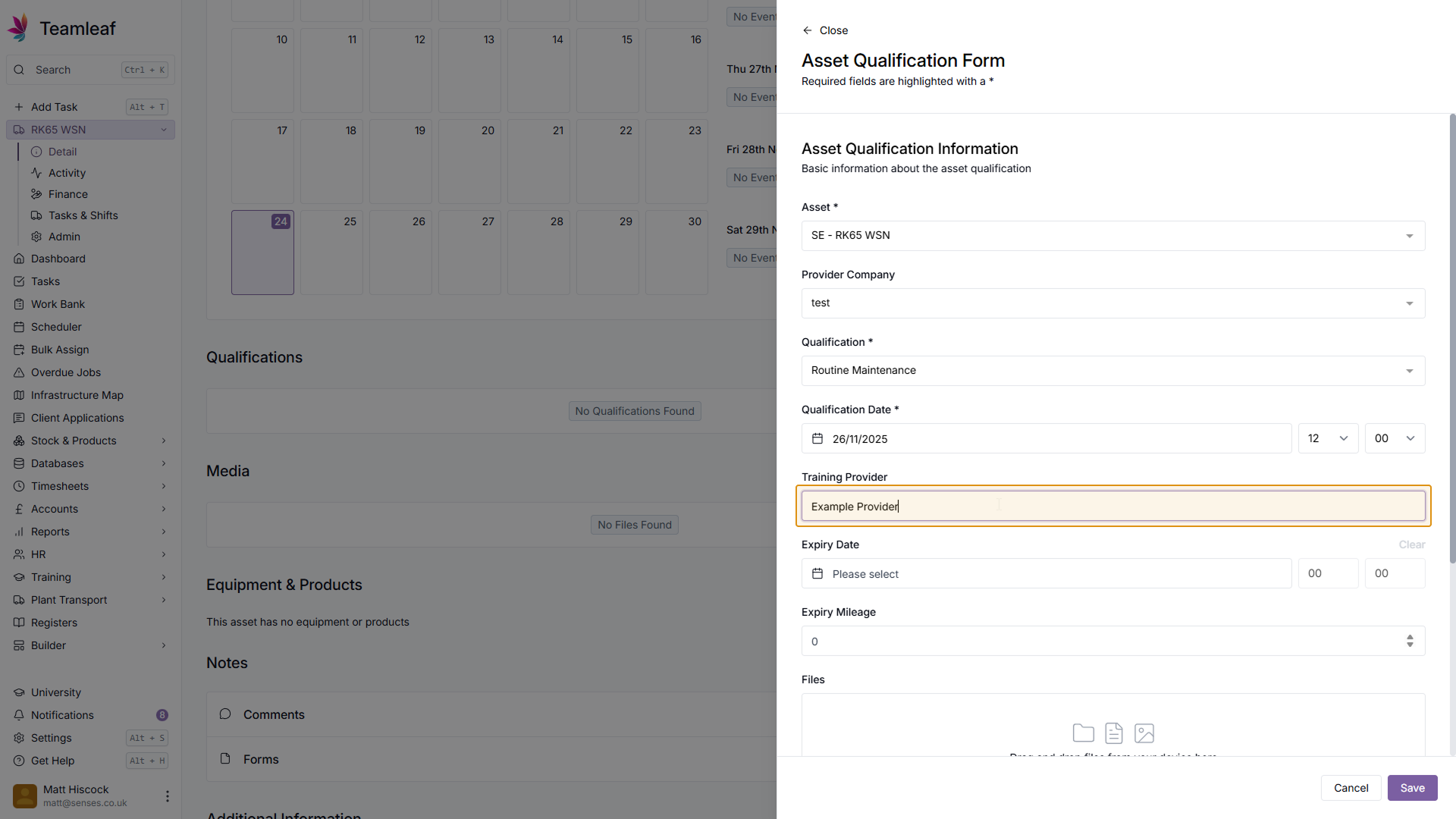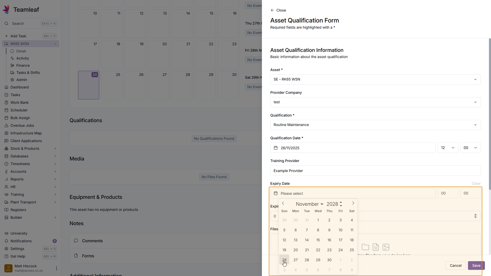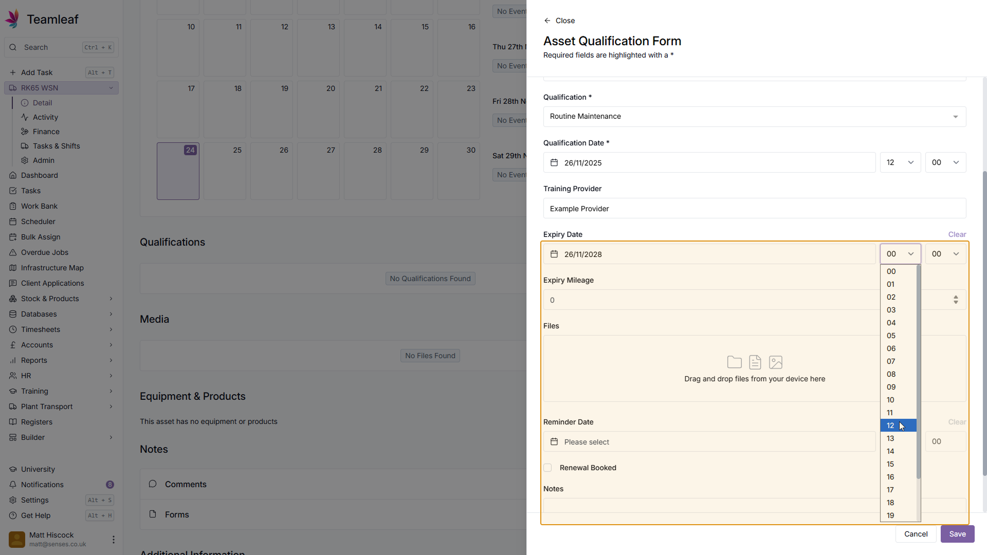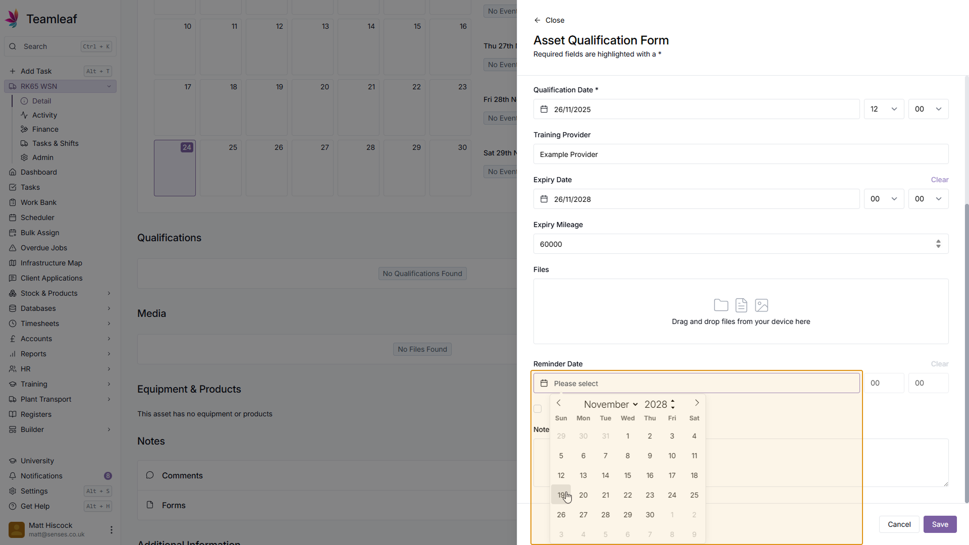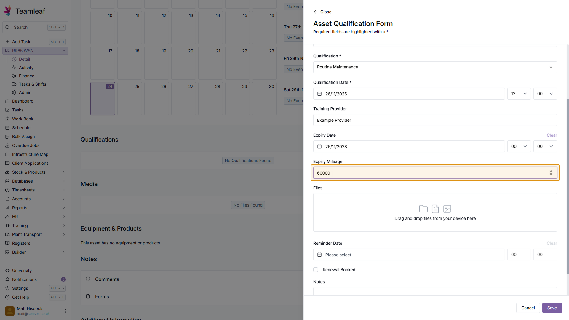 If you wish, you can set a reminder to renew this Asset Qualification by setting a Reminder Date & Time. If you already have a renewal booked, you can also add this here by ticking the 'Renewal Booked' checkbox.