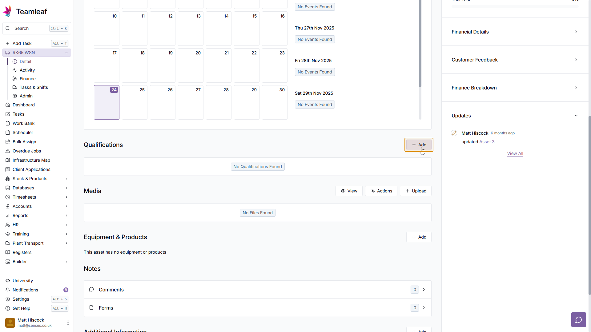 On the Asset Page, scroll down to the 'Qualifications' section, and click 'Add'