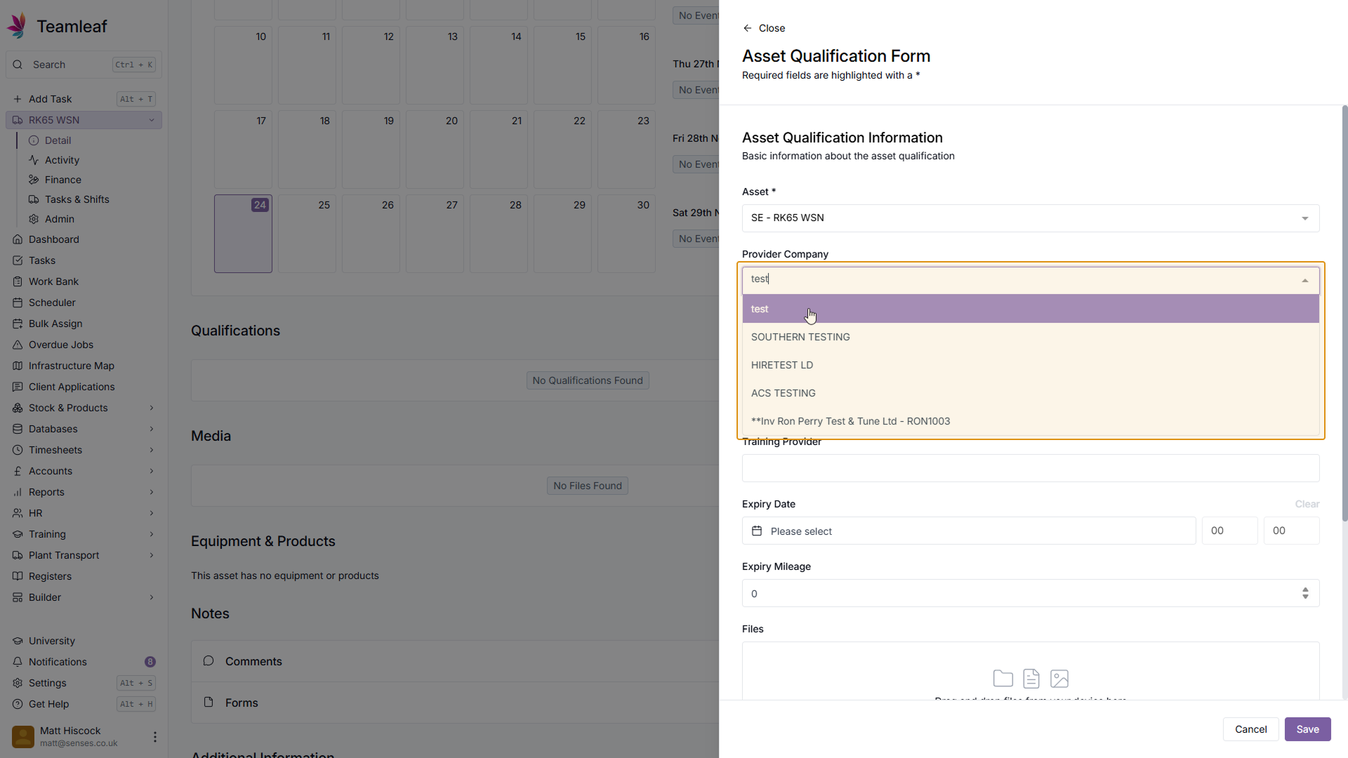 In the form that then opens, select the provider company for the Asset Qualification
