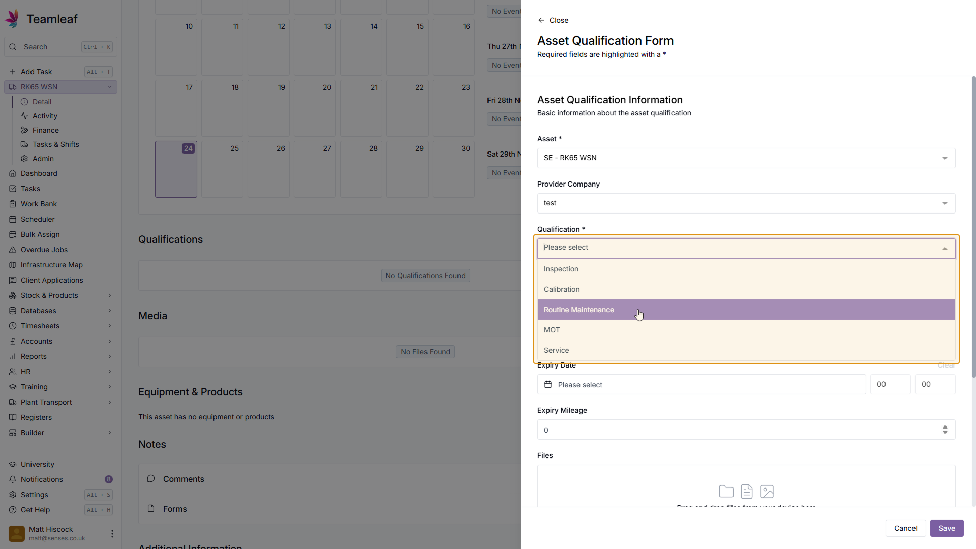 If you wish, you can add supporting files for this Asset Qualification using the files section.