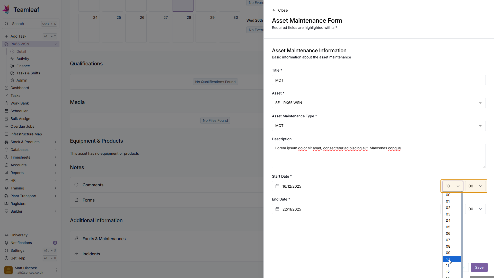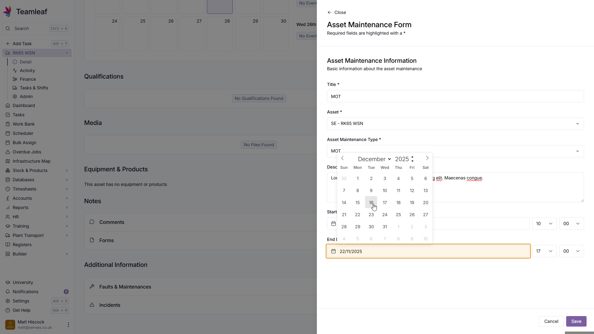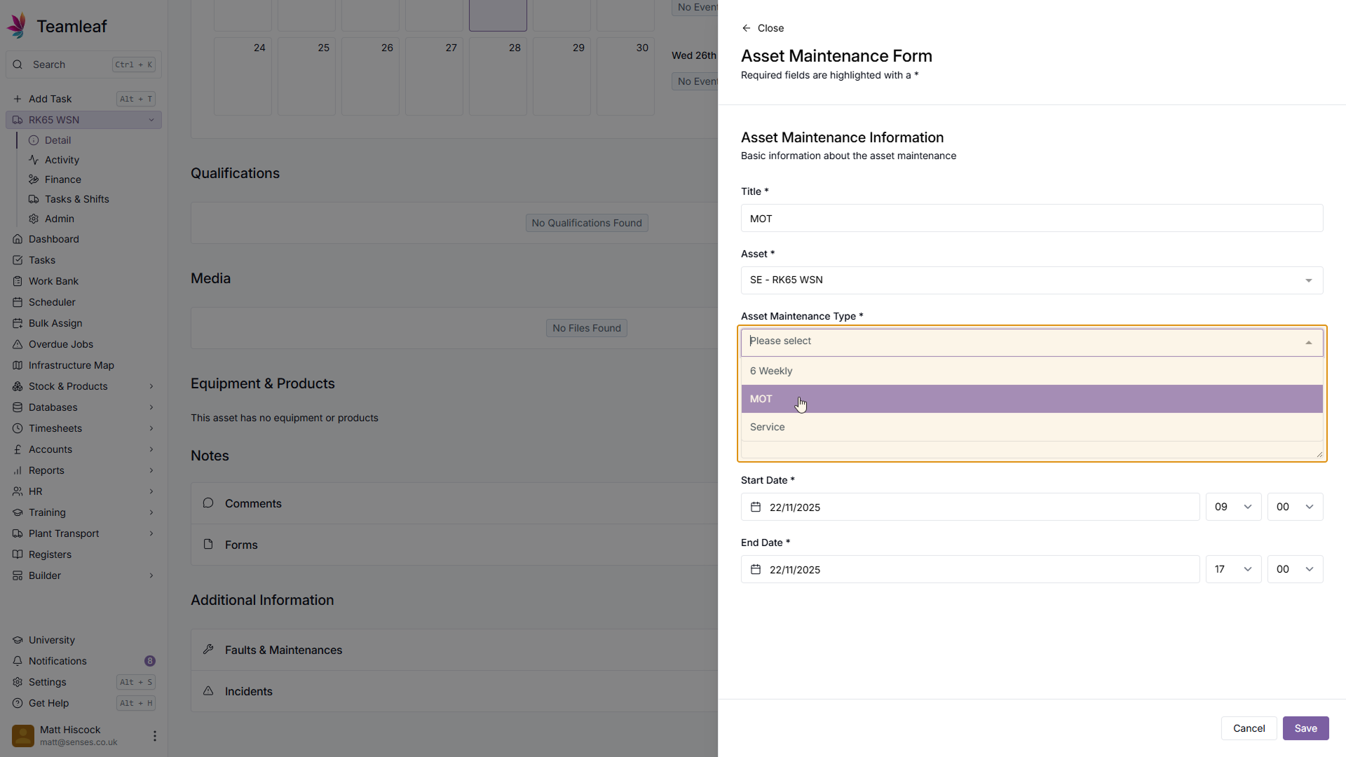 Next, select which Asset Maintenance Type you'd like to use for this Maintenance