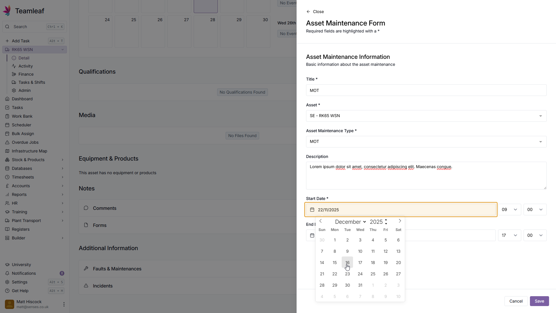 Next, select the Start Date for this maintenance by selecting a date in the date picker
